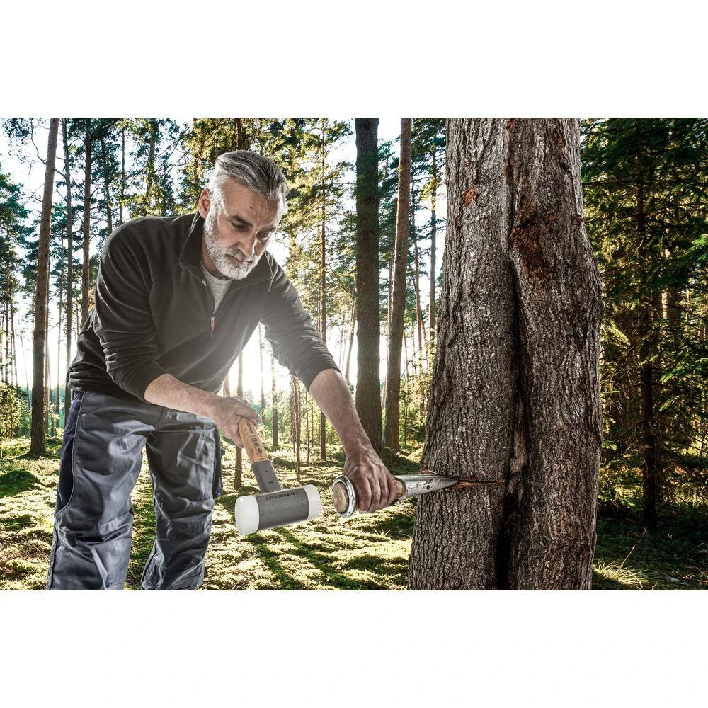 The Halder Supercraft non-rebounding, dead blow hammer virtually eliminate bounce back and vibration, making this a very worker friendly tool. Its high quality construction includes a completely welded and sealed canister filled with steel shot. This steel shot absorbs the energy when struck. The Supercraft features extremely durable nylon face inserts that allow for a powerful strike yet will not leave marks. These faces can be replaced when worn out, making this an extremely long-lasting tool. This is an industrial grade dead blow hammer. This hammer was originally designed to hit steel as a replacemnt to those using brass, bronze, lead and steel hammers in industrial settings. It will not mushroom or produce dangerous sharpnel making this a much safer alternative to traditional steel hammers. There is also no way that the steel shot can escape the welded steel housing which is a constant concern with normal polyurethane covered dead blow hammers. The nylon is very strong and will not crack. Small sizes are great for assembly, leather and craftwork, metalworking. The larger size SuperIt is perfect for hitting steel tooling, pins, concrete forms and stakes, equipment or anything that you need to hit hard. These hammers come in sizes between 9 oz. up to 20 lbs. You will find a lot of users for these super handy dead blow hammers.