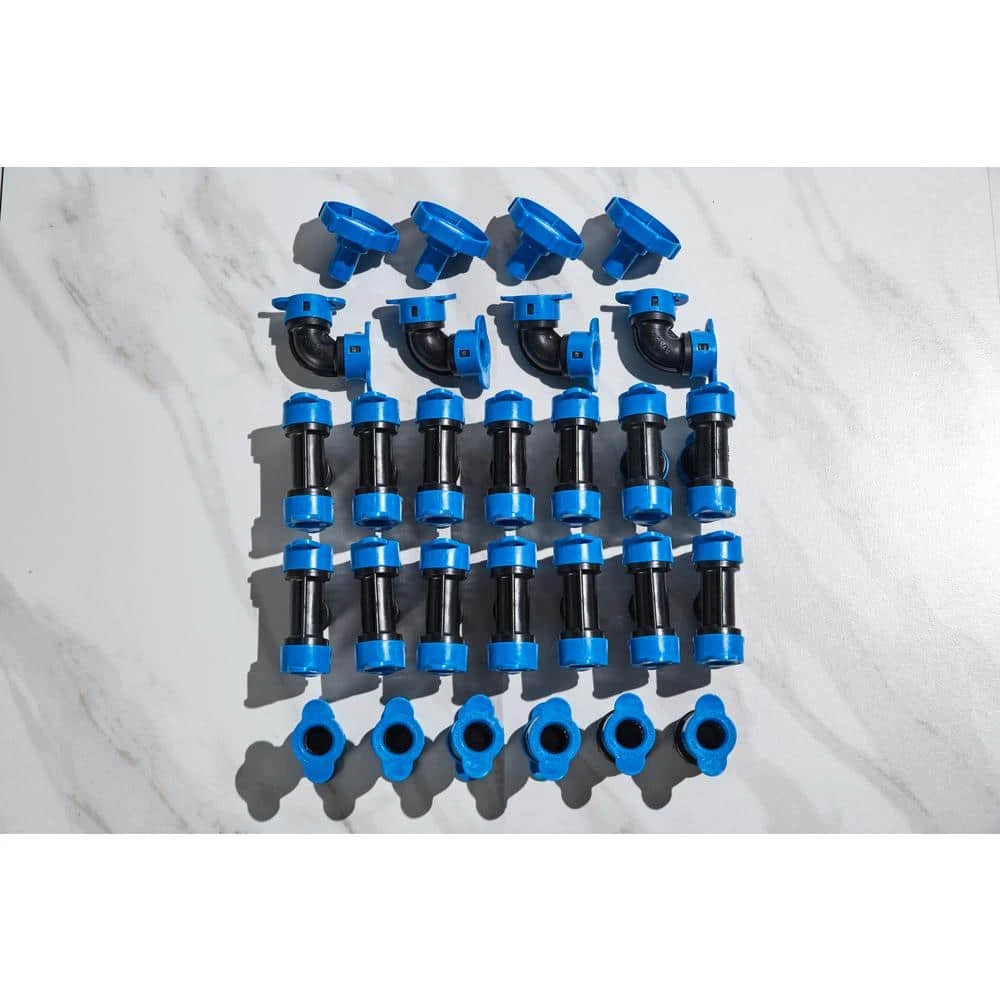 - Everything you need: kit contains 12 high-efficiency sprinklers for two separate zones, Blu-Lock tubing and fittings, tubing cutter, 200 lb. pressure gauge, and digital timer