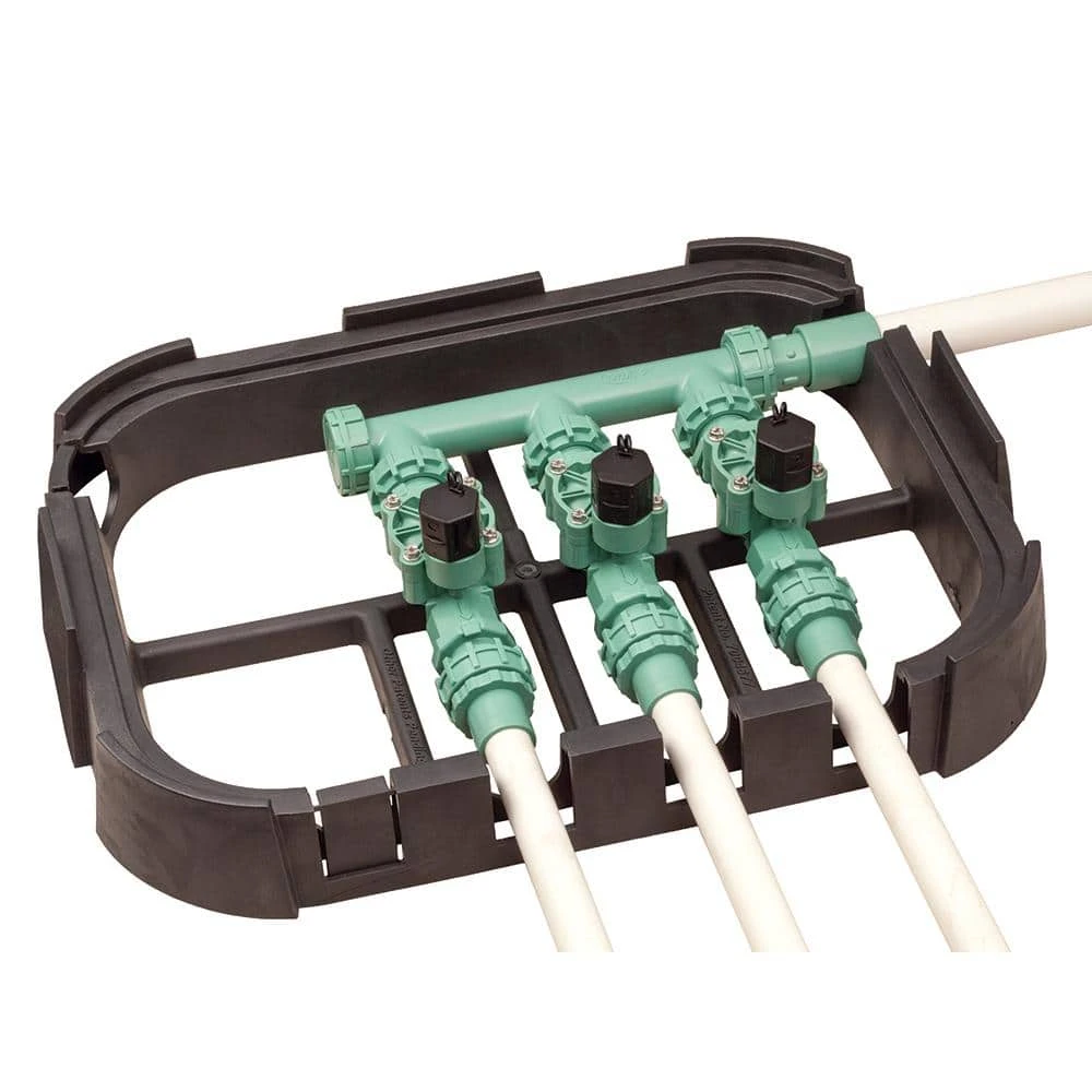Orbit’s 3-Valve Inline Manifold Assembly provides the most complete, reliable and easy method to install multi-valve systems. This system works with both 3/4 in. and 1 in. systems. Included are manifold, jar-top valves and all other components required for a 3 valve system. Makes installation and servicing a snap.