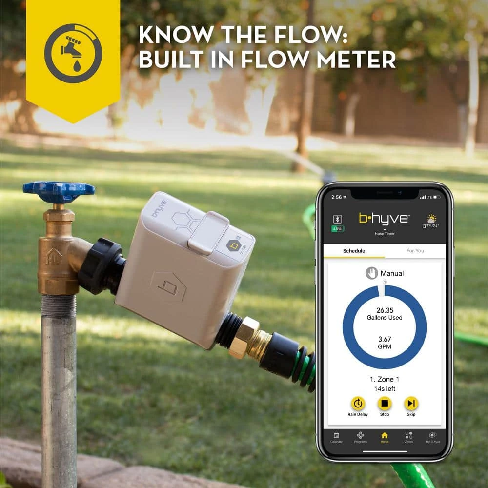 The B-hyve Smart Hose Faucet Timer with Wi-Fi hub gives you complete control over hose faucet watering from your smart device. No more dead plants because you forgot to water them. No more soggy lawns because you forgot to turn the water off. Download the free Android or iOS B-hyve App or use your computer with a Wi-Fi connection to program your timer. The Wi-Fi connection allows you to make changes to your programming from anywhere and allows the timer to receive instant weather updates. With instant updates, the timer will adjust the watering scheduling delivering just the right amount of water to your plants, this avoids wasting water with the added benefit of saving on your water bill. Manual watering is available on the timer so you can water without using your phone. Add on additional smart valves to create multiple watering zones in your yard, these timers will network together to boost the signal strength without the use of repeaters.