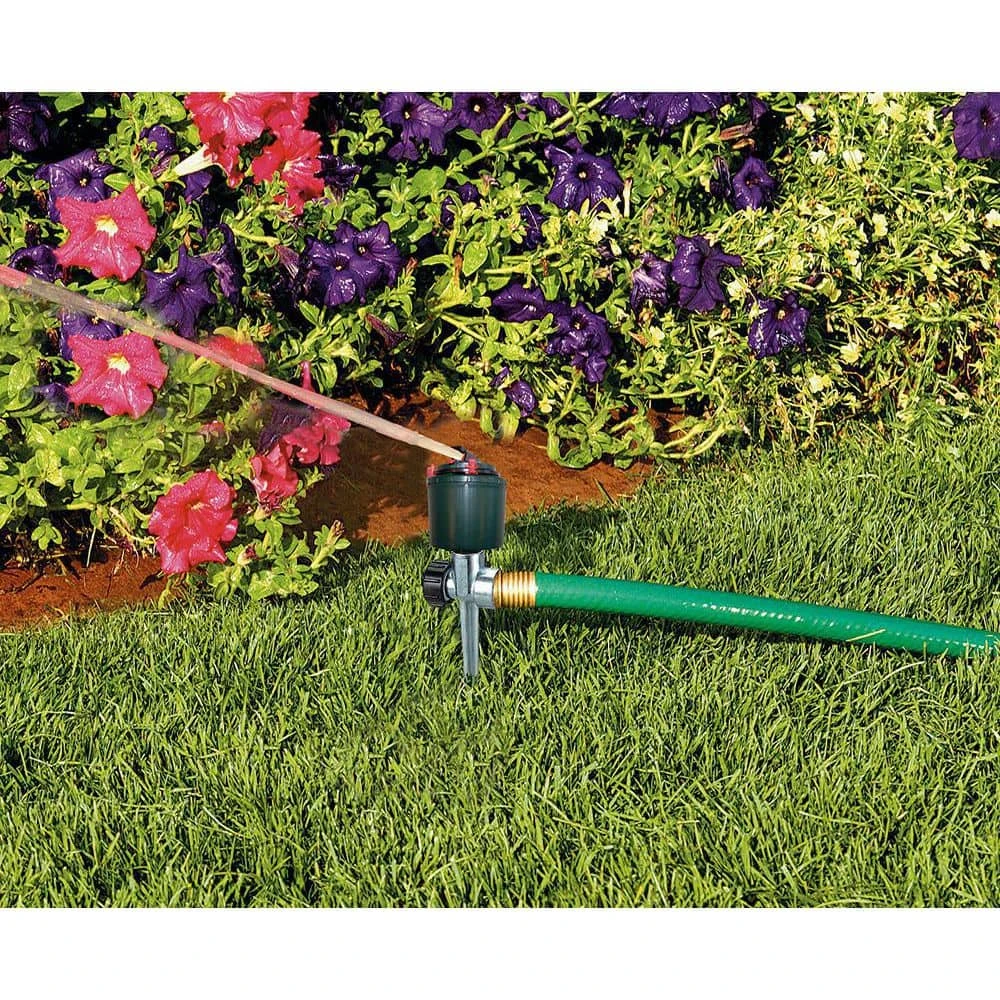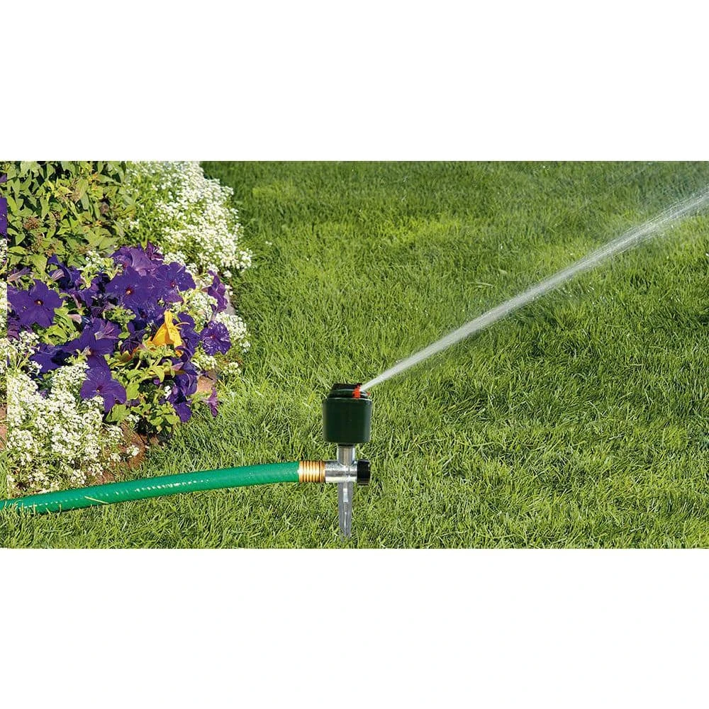 This gear drive sprinkler waters up to 80 ft. in diameter with whisper quiet action. With various options this sprinkler provides complete spray control. With a metal flow thru spike it is easy to position and you can connect multiple sprinklers for larger watering areas.