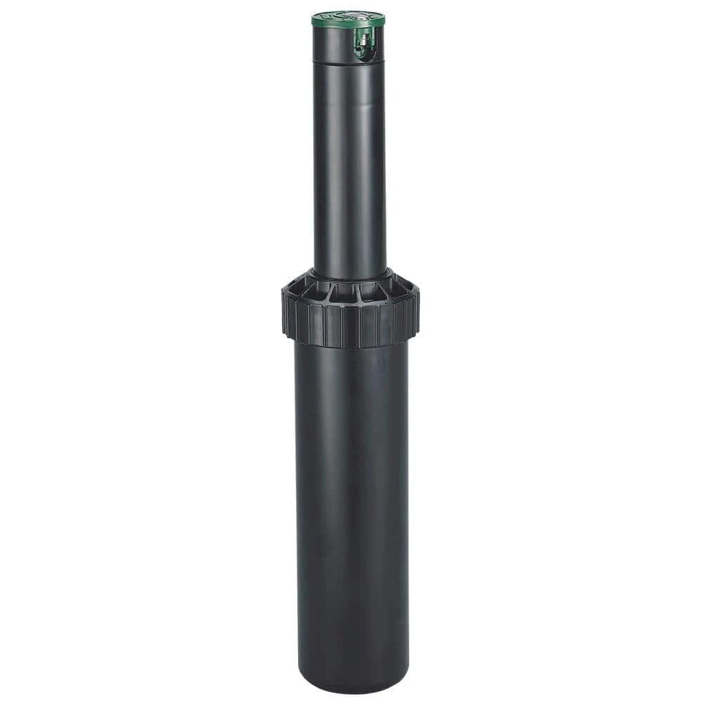 The Orbit Saturn III Plastic Pop-Up Gear-Drive Sprinkler Head can cover 15 ft. to 30 ft. in medium-sized areas. The sprinkler head is 4 in. tall and can adjust its arc from 40 degrees to 360 degrees. Precision-engineered nozzles and spray patterns help provide uniform coverage and help eliminate dry spots.