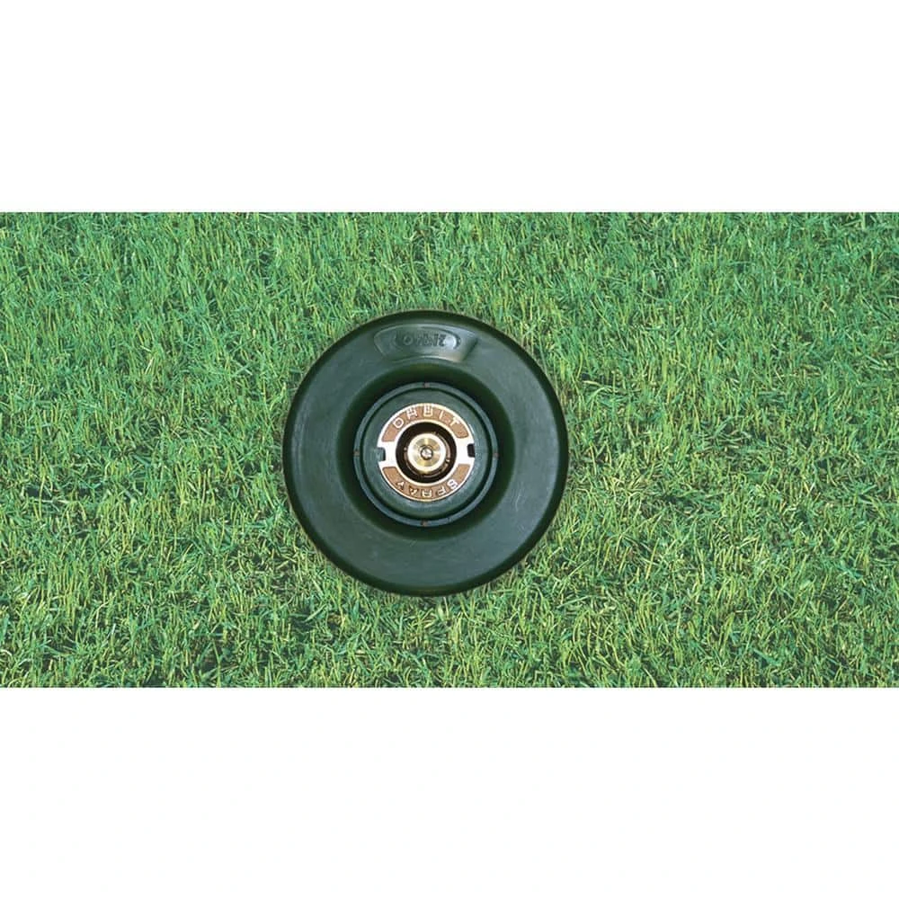 The 5-inch spray guard protects your sprinklers from lawn overgrowth that can affect optimal spray patterns. Made of durable plastic construction, the guard can withstand extreme temperatures and impact. Molded in a solid green color to blend with your lawn. Fits spring loaded pop-ups, gravity pop-ups and fixed pattern sprinklers of all manufacturers.
