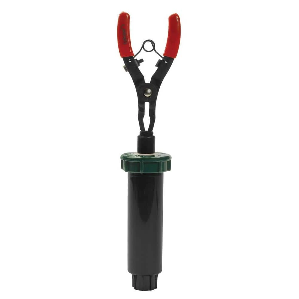 Use the spray head pull-up tool to replace and install nozzles. Pulls up spray head sprinklers with or without installed nozzle. Use the teeth to pull up the nozzle or stem and then clamp the tool to the stem to hold the stem up while installing a new nozzle or performing maintenance.